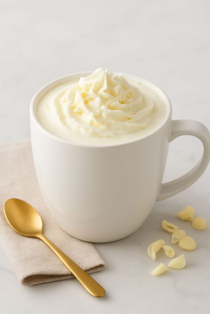 This drink can also be customized with additional flavors, like peppermint, caramel, or cinnamon, which enhance the natural sweetness without masking the white chocolate. Topped with whipped cream or a light dusting of cocoa powder, it becomes an irresistible treat for cozy mornings, chilly evenings, or any time you want a café-style experience at home.